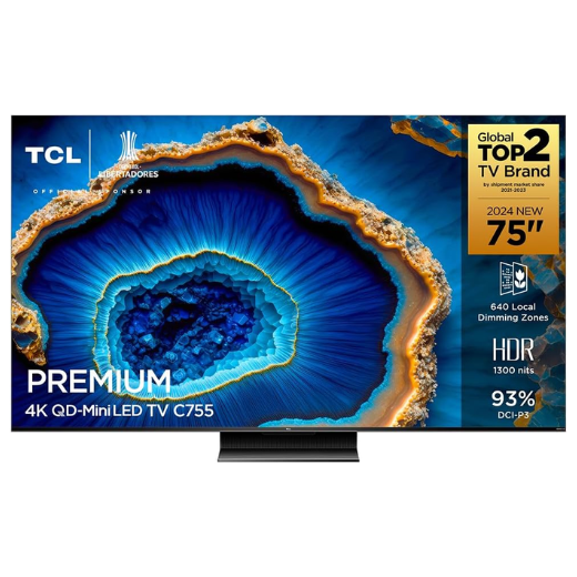 Para quem busca uma alternativa à linha da Samsung com sistema Google TV e tecnologia Mini LED, a TCL C755 é uma excelente opção. Ela combina Mini LED com pontos quânticos (QLED), entregando imagens vibrantes, alto contraste e ótima profundidade de cor.
